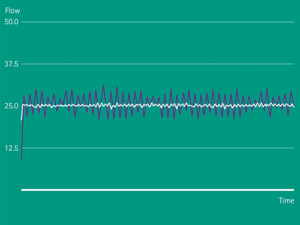 Указанные графики показывают точность и равномерность потока с течением времени. Следует помнить, что на характеристики и точность введения существенно влияют используемые расходные материалы.
