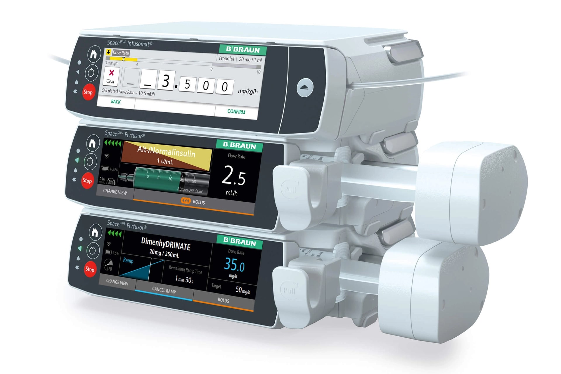 Управление Спэйс®плюс интуитивно понятно и удобно для пользователя. Он может быть гибко адаптирован к конкретным клиническим рабочим процессам, что поможет сократить количество ошибок при применении лекарств. И Infusomat®, и Perfusor® имеют одинаковый дизайн, интерфейс и структуру меню. Это означает, что медицинским работникам требуется меньше времени на обучение, что позволяет снизить риск неправильного обращения c техникой.